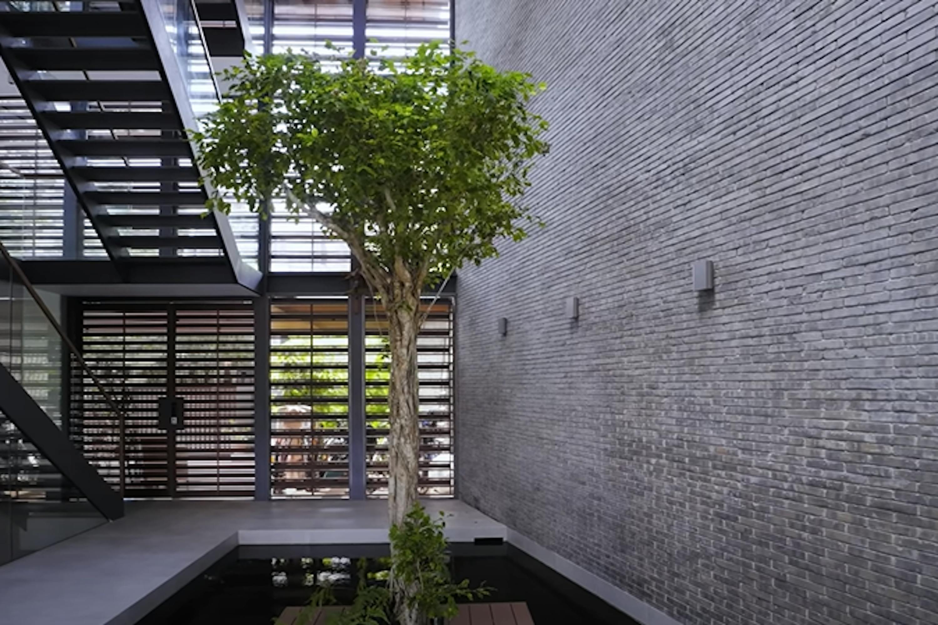 This home embodies a core concept of Singaporean housing- the creation of outdoor spaces that offer shelter from both rain and sun while mainainig privacy.
