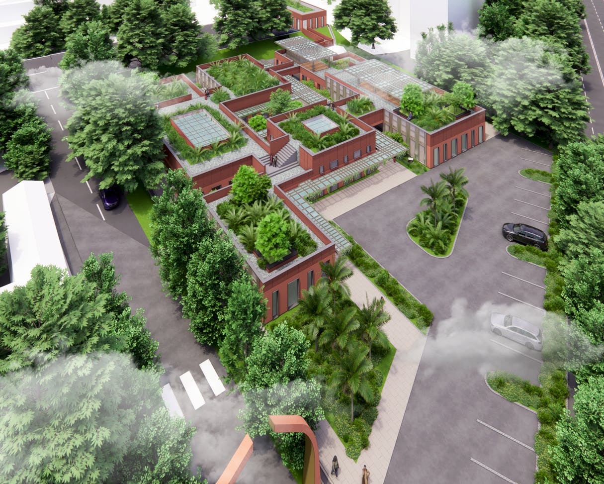 The proposal draws on the banyan tree as both a cultural symbol and an organising architectural idea, conceiving the cultural centre as a place of shelter, gathering, and growth. The proposal is arranged as a predominantly single-storey ensemble organised around courtyards and communal circulation spaces, allowing the building to sit low and deferential within the Mission campus.