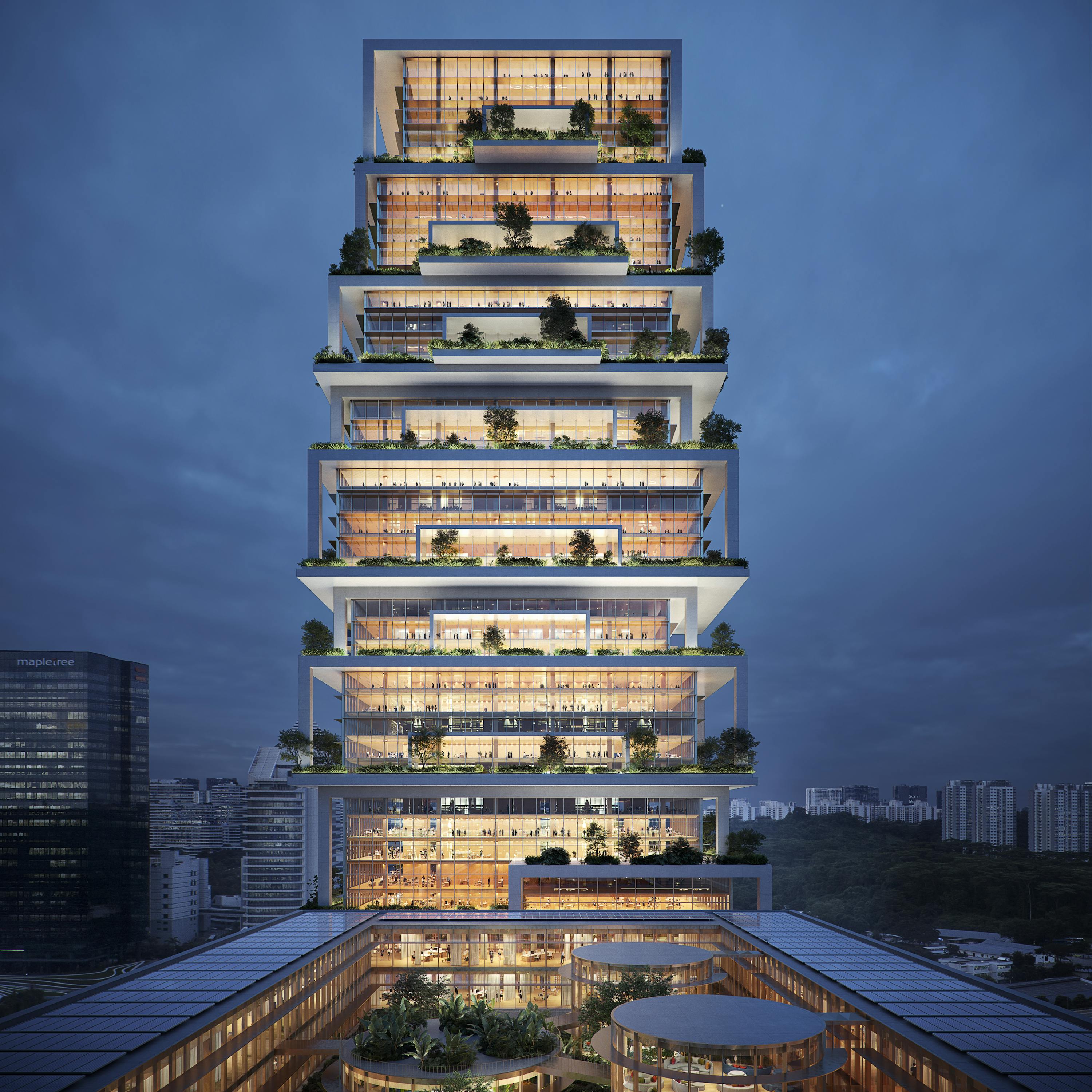 This informed our design of the new Singapore State Courts building in Havelock Square, at the heart of Singapore’s Chinatown. The immediate site is characterised by two dominant types: highrise towers and four-storey shophouses. The new 178m high court building comprises two towers, the ‘court tower’ houses the courtrooms while the thinner ‘office tower’ houses the judges chambers and staff offices. The ‘court tower’ is envisioned as a series of open platforms with courtroom boxes. These platforms are not only of different heights to accommodate courtrooms of different sizes, but also completely open—there is no glazed façade around the tower. Instead, each platform is a lushly planted terrace that filters the tropical sun and allows views out over the city. The court tower as a result appears light, open, and welcoming.
