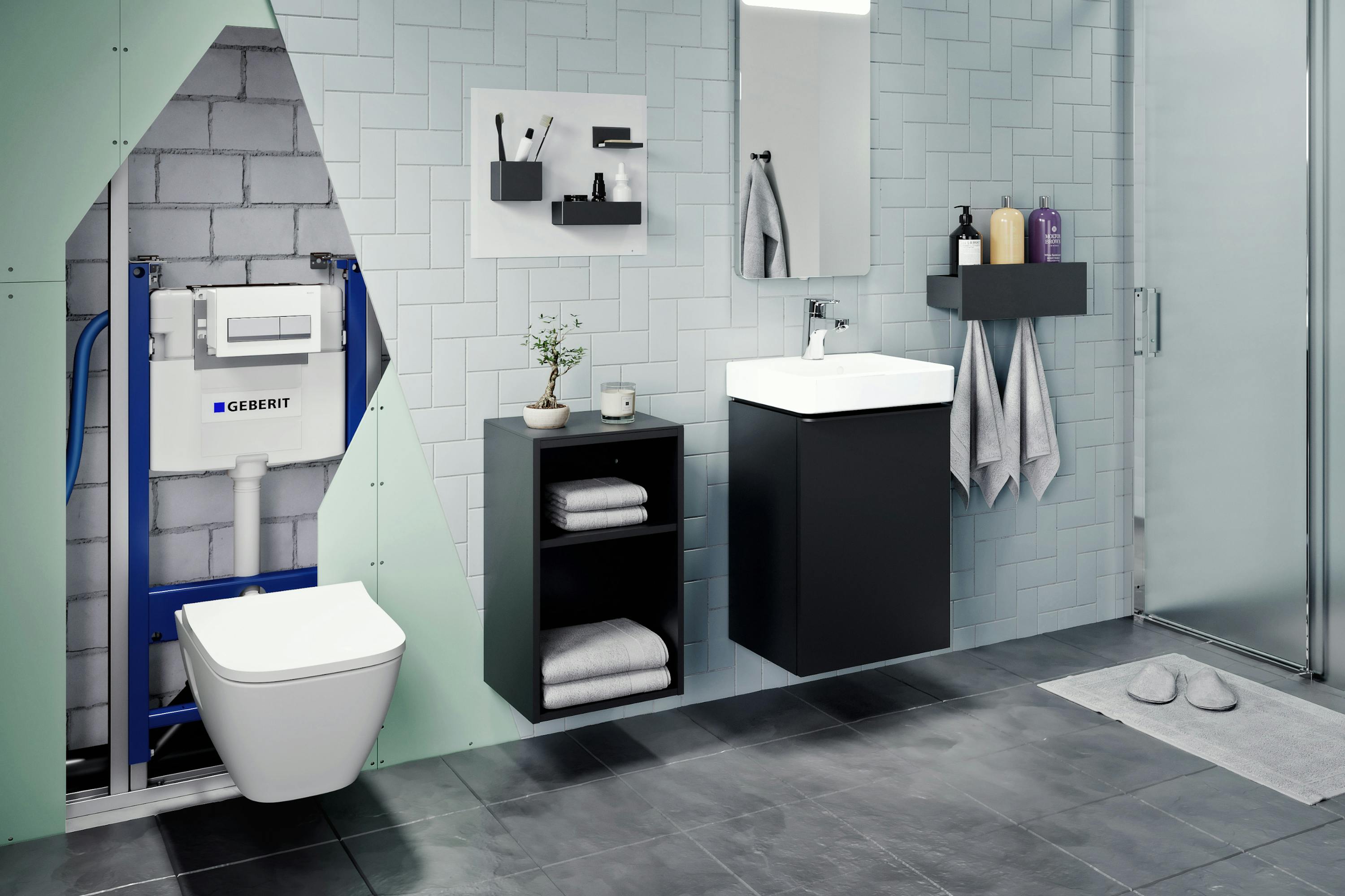 Geberit concealed cisterns are the classics of modern bathroom installations and have been installed a million times over around the world for more than 50 years. They are known for their proverbial reliability. Every cistern is leak-tested before it is delivered. The 50-year guaranteed spare parts availability provides long-term security. The flush volume of the Geberit Sigma concealed cistern 12 cm can be limited to 4.5 litres. It’s therefore exemplary in terms of water consumption and has achieved consistently high scores on the Water Efficiency Label.