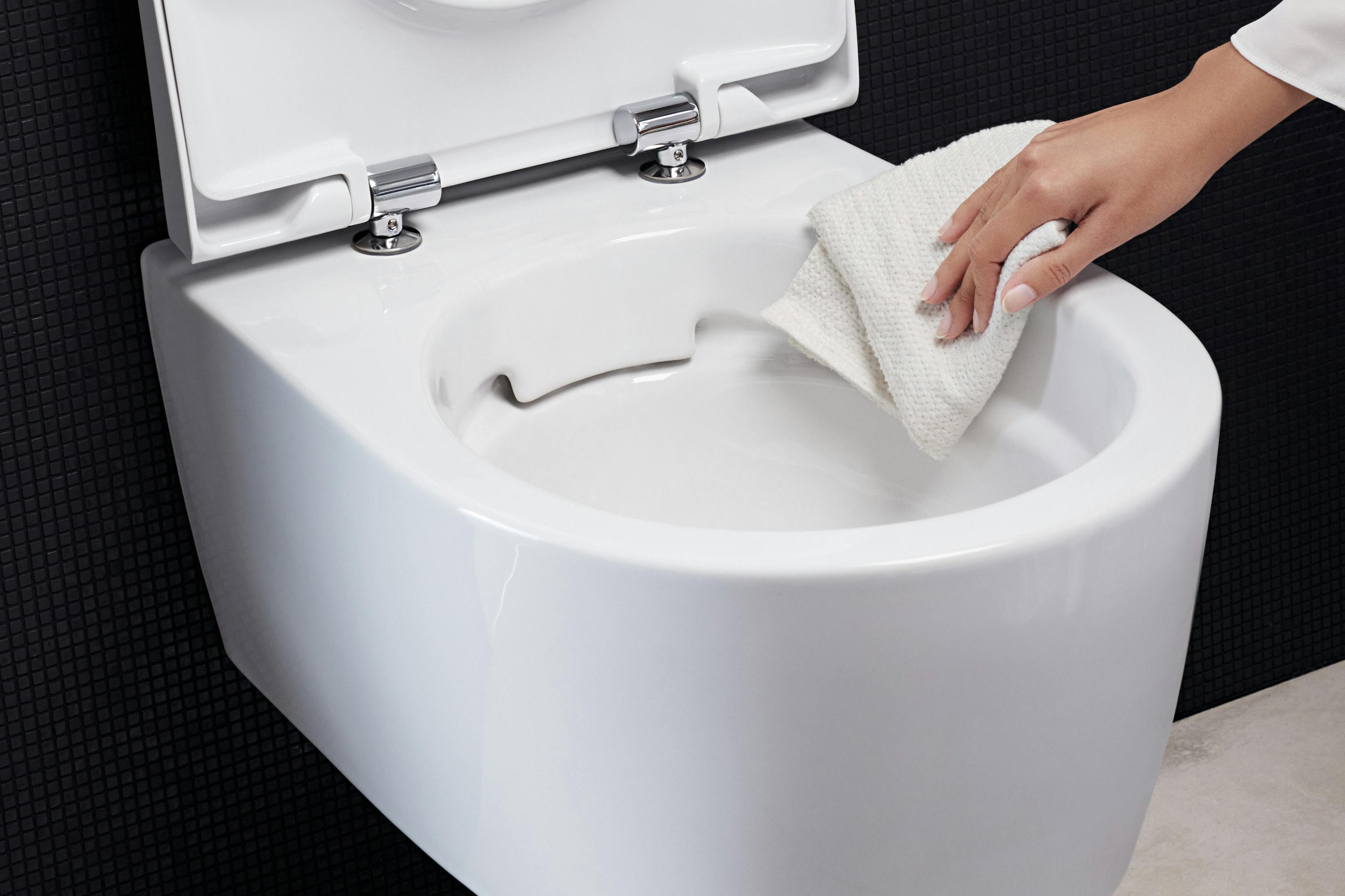 In addition to design, hygiene and ease of cleaning are also decisive factors when choosing WC ceramic appliances. The flush rim is a nuisance because germs, dirt and deposits can accumulate there. The rimless WCs from Geberit are designed entirely without a flush rim. There are therefore no hidden, hard-to-reach places where deposits can build up and odours can develop.