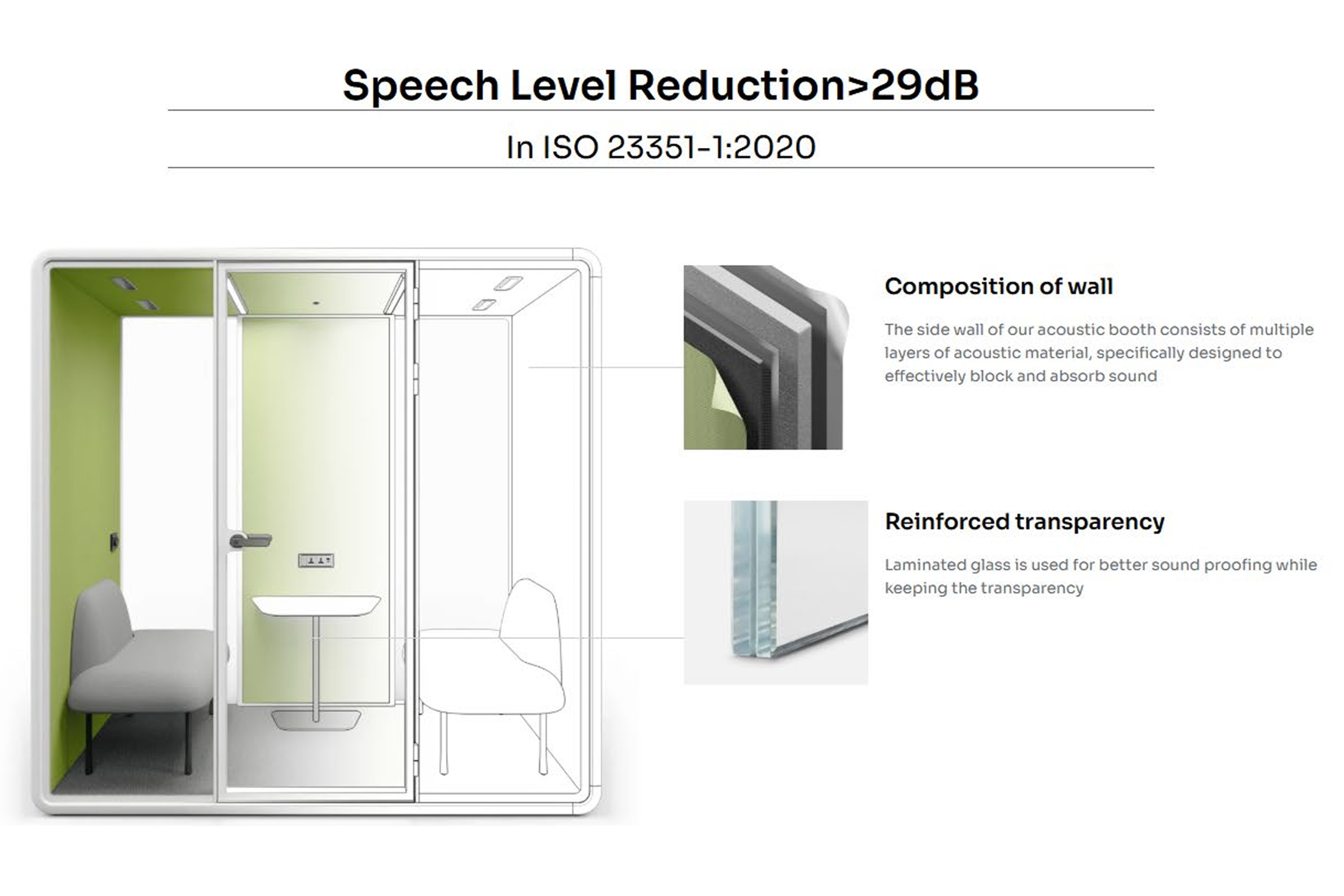 • Acoustic Privacy: Designed with sound-absorbing materials, ensuring confidential conversations without external disturbances.