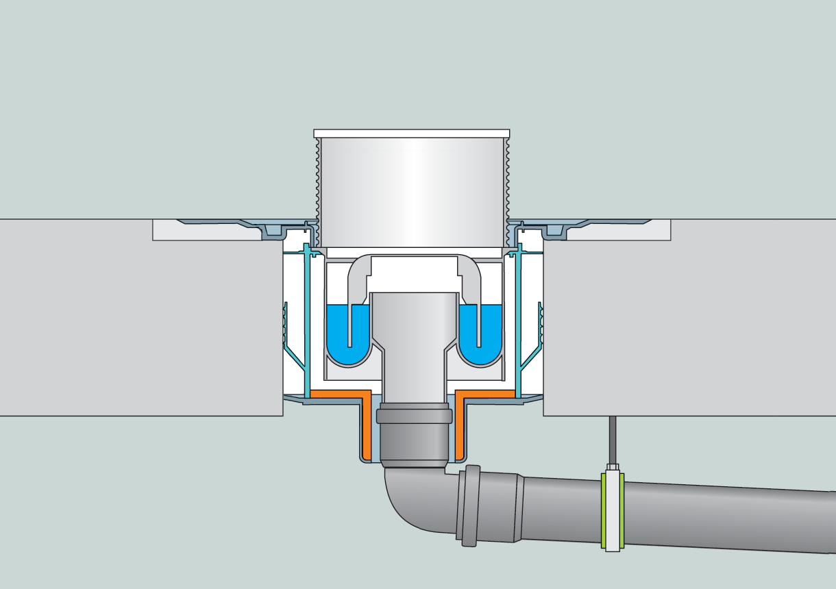 In the normal day, the Advantix bath drain R120 comes with a water seal to prevent odour entering the bathroom. The Advantix pipe lead-in can be connected to a Viega shower channel with this feature.